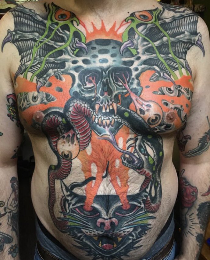Professional del tatuatge des de fa 22 anys, el seu univers viu està poblat de personatges imaginaris que van des de petits monstres fins a animals surrealistes inspirats en els mons que ens envolten. També treballa la tipografia, difonent el seu art arreu del món!