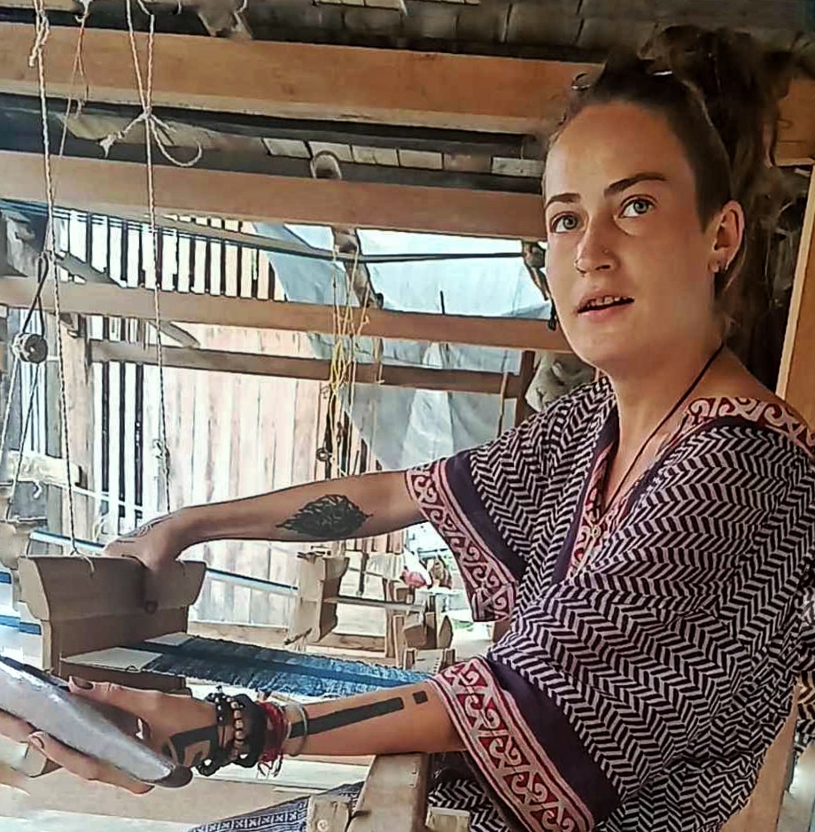 Amb formació en tèxtil, la Manaa combina tècniques ancestrals i modernes. Recol·lecta plantes locals per crear tintes i pigments naturals, posant l’èmfasi en la consciència ambiental. És experta en l’extracció de pigment d’índigo i imparteix tallers de tint natural i estampació tèxtil.