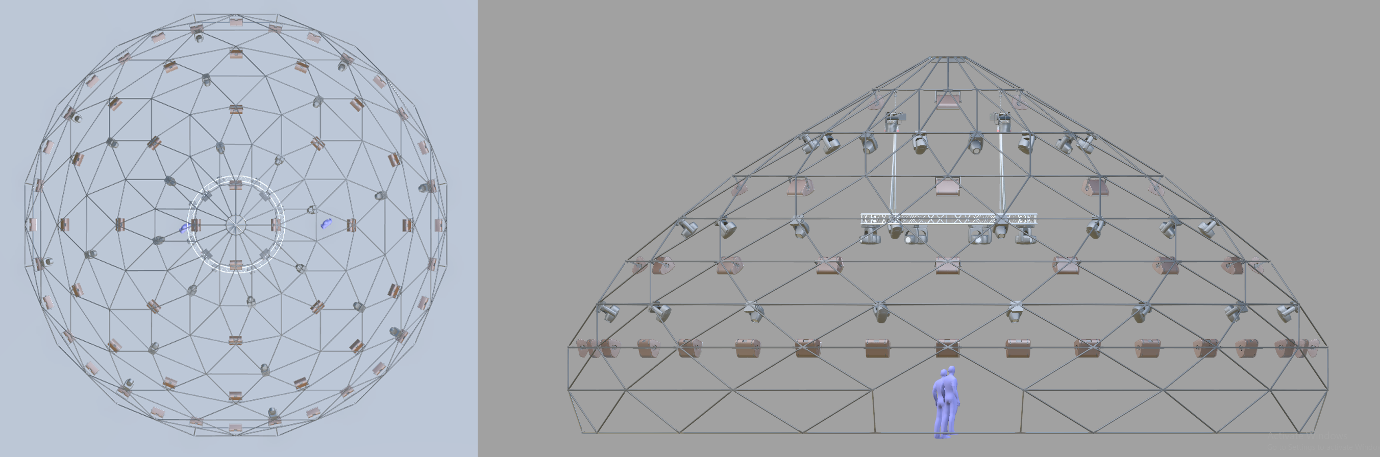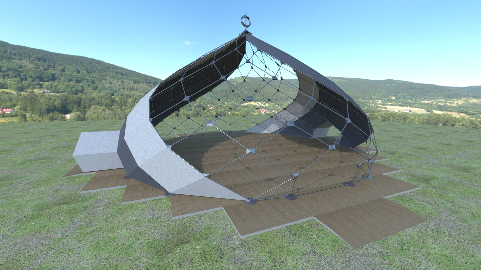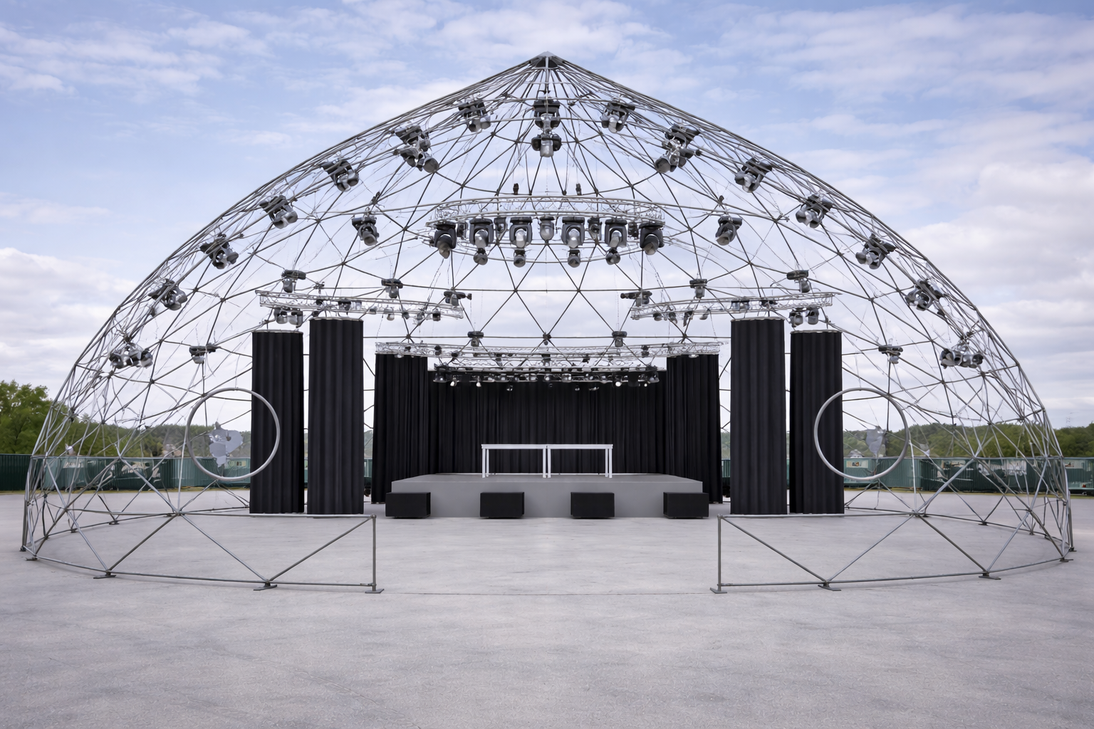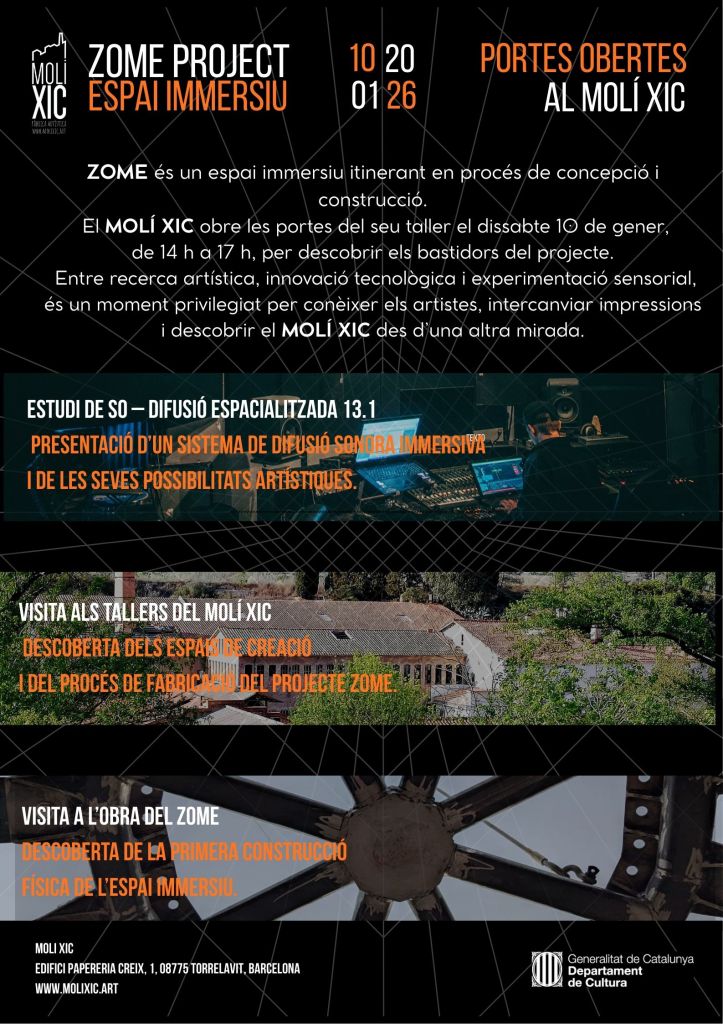 Validada per un despatx d’estudi, l’estructura garanteix seguretat i solidesa, alhora que és totalmentadaptable. Aquest Zome es farà servir per a la creació de spectacles a mida, integrant arts visuals, escenografia i so, oferint així una experiència immersiva única, en perfecte acord amb les necessitats dels artistes i del públic.