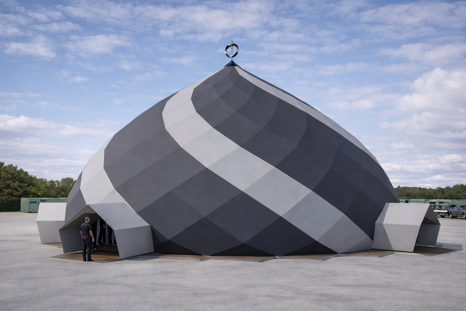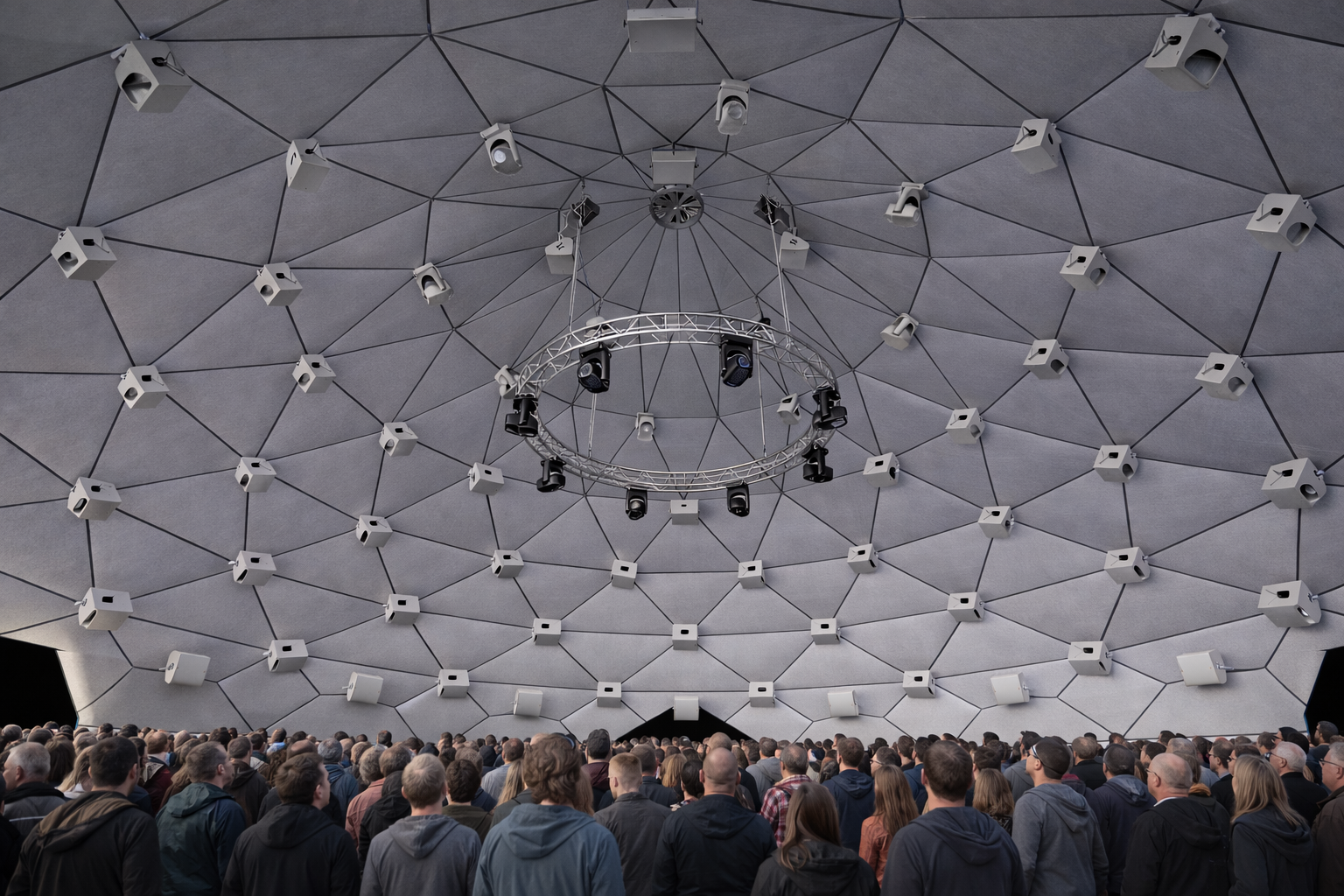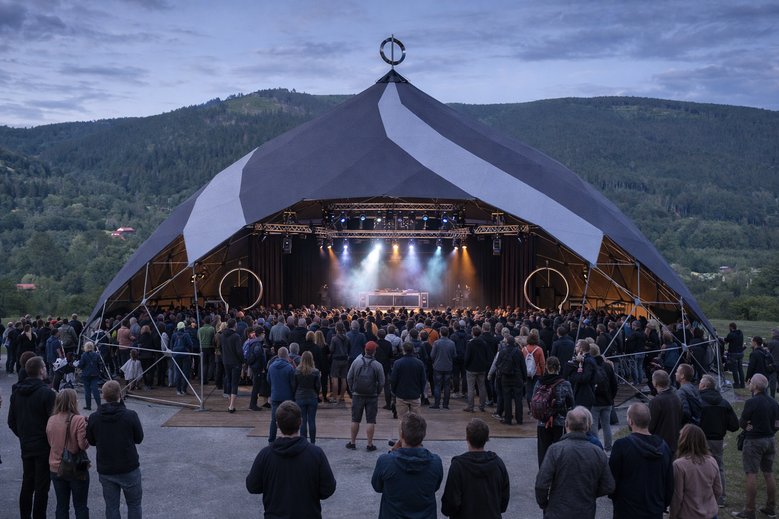 Validada per un despatx d’estudi, l’estructura garanteix seguretat i solidesa, alhora que és totalmentadaptable. Aquest Zome es farà servir per a la creació de spectacles a mida, integrant arts visuals, escenografia i so, oferint així una experiència immersiva única, en perfecte acord amb les necessitats dels artistes i del públic.